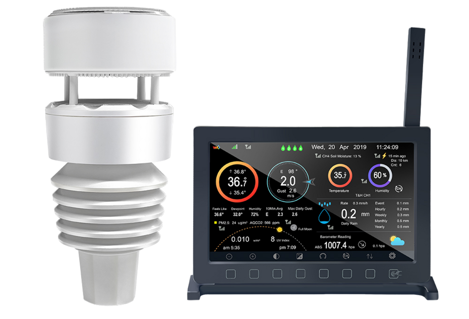 Stația meteo WS90, transmite prin unde radio, la fiecare minut, valorile înregistrate: temperatura aerului, umiditatea aerului, cantitatea de precipitații, direcția vântului, intensitatea vântului, rafale ale vântului, radiația solară, indicele UV.